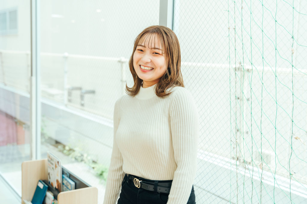 私が保育士になろうと思ったきっかけは、私ちっちゃい時から下の子にすごく好かれるタイプだったんです。それで全然知り合いとかじゃない子とかを集めて、キャンプ場とかでみんなで遊んだりしていたんですけど、そういう経験があって、保育士を仕事にしたら楽しいかもしれない、と思ったのが最初のきっかけです。