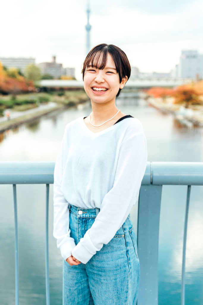 東京成徳短期大学 2年の松﨑 悠真さんに、園の目の前からスカイツリーが綺麗に見える、虹がテーマの亀戸こころ保育園でお話を伺いました。