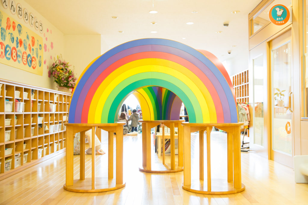 虹をテーマにしたオープンスペースが魅力の保育園