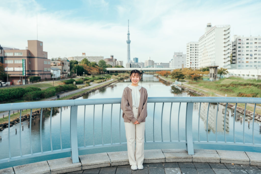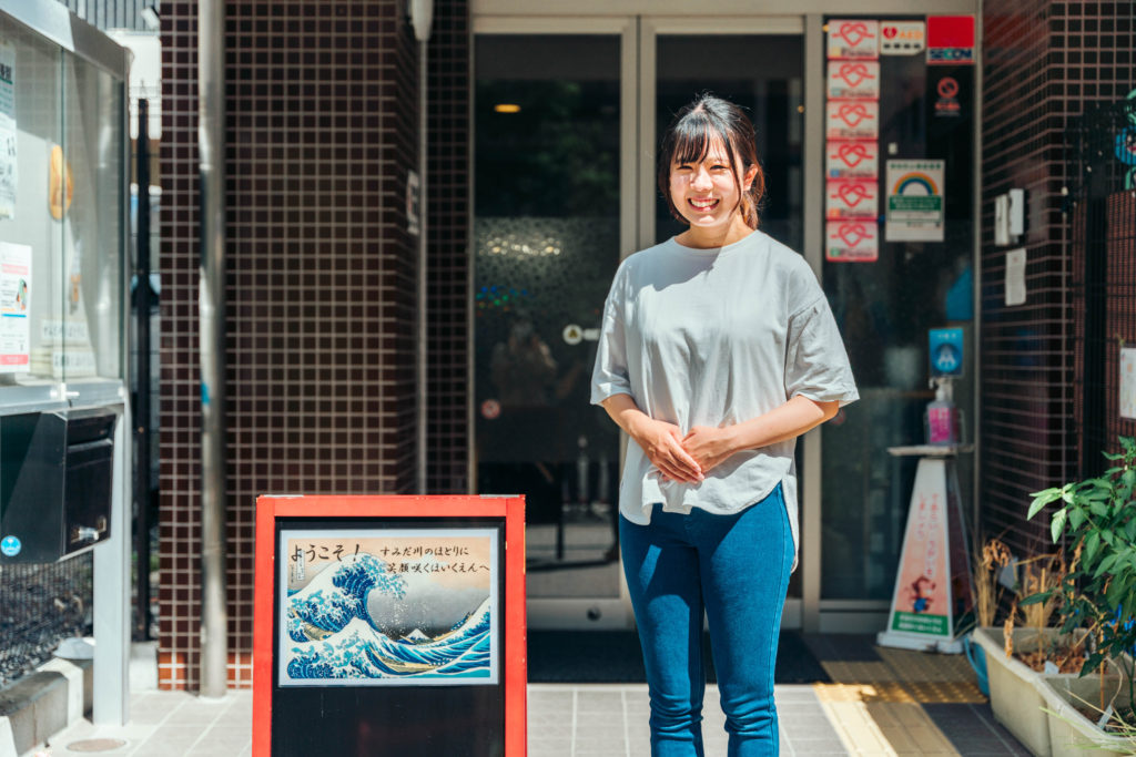 共立女子大学 4年の小谷野 琴音さんは、葛飾北斎の絵が飾られている、すみだ川のほとりに笑顔咲くほいくえんでお話を伺いました。 -